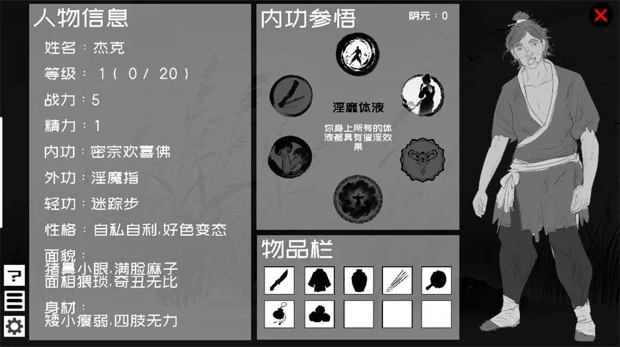 游戏介绍这是一款由【追夢鹹魚】在DL平台最新发布的一款很有意思的爽文SLG游戏游戏讲述转生到武侠世界的普通人,获得绝世秘笈后,决定睡遍所有女性